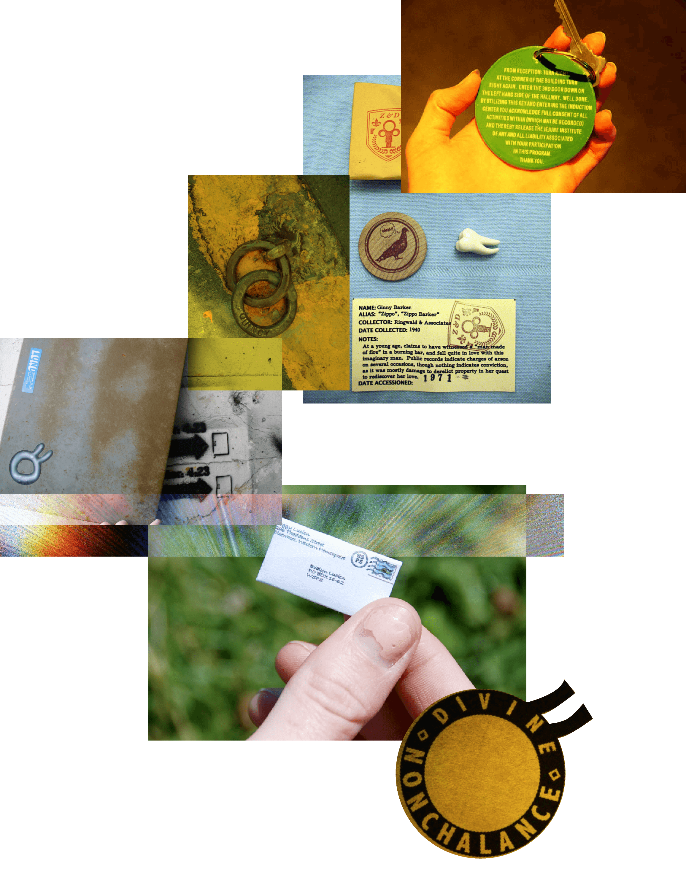 As you receive each modality into your personal possession the clue becomes a lived experience. When walking through the familiar sites prescribed through the work, Nonchalance’s narrative layers time and lifts you up into a parallel reality of intrigue and the desire to right a topsy-turvy past through inquiry and the ability to just drift.